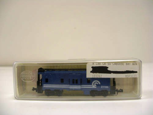 N Scale Bay Window Caboose - Conrail. Ready to run freight car. Bay window caboose. These assembled and ready-to-run cabooses are prepainted, prelettered and include trucks and Rapido-type couplers.The Trainz SKU for this item is P11507252.Condition: NewTCA Grade: C-10Original Box: YesManufacturer: Model PowerModel Number: 3123Scale/Era: N ScaleModel Type: Freight CarsRoad Name: ConrailThe Manufacturer's Suggested Retail Price (M.S.R.P) for this item is .98.